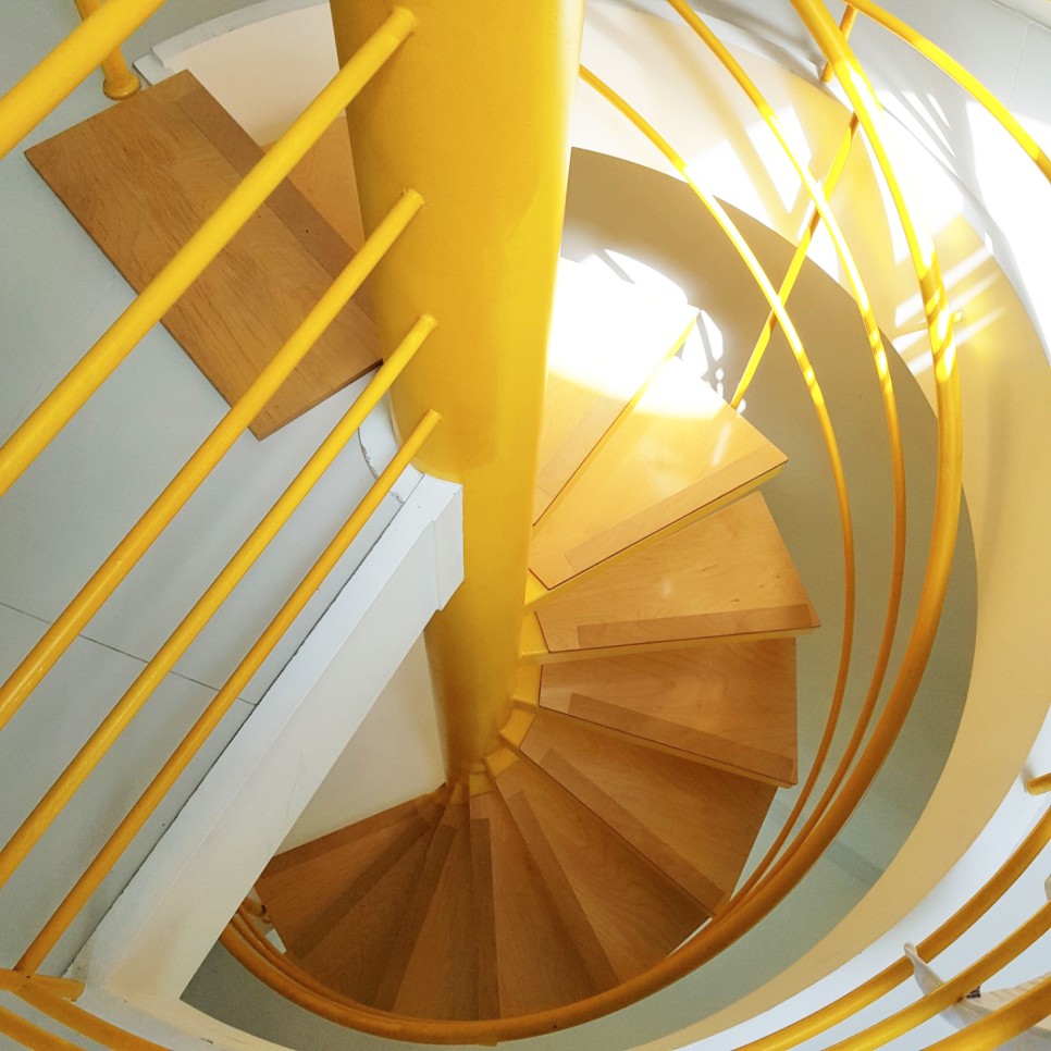 먼저 2층을 설명드리겠습니다. 팬션에 들어서면 2층으로 올라가는 둥근 계단이 있습니다.