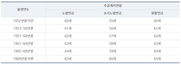 1. 국민연금을 받는 연령이 높아짐