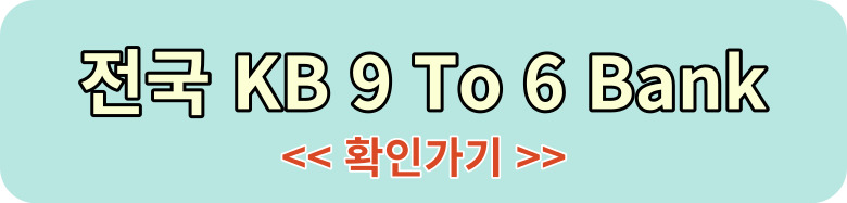 국민은행 홈페이지를 통해 서울, 경기, 및 각 지역별로 위치하고 있는 KB 9 To 6 Bank와 AfterBank - To 5 Bank와 AfterBank - To 6 Bank를 확인할 수 있습니다.