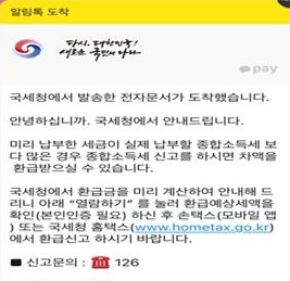 - 모바일 환급 안내문 확인 (카카오톡, 문자, 우편 등)