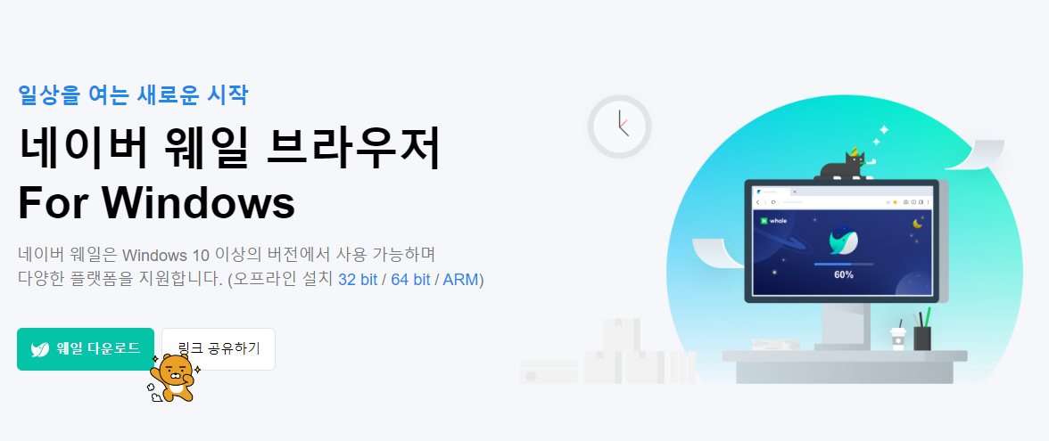 네이버에서 네이버웨일을 검색해서 다운로드를 클릭합니다.