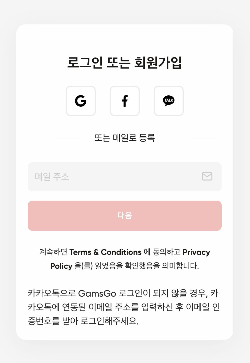 우측 상단 가입하기를 눌러서 가입절차를 진행합니다. 가입은 메일로 가입합니다.