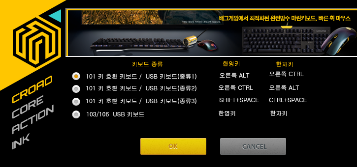 여기서 '한영키'와 '한자키'를 세팅할 수 있습니다.