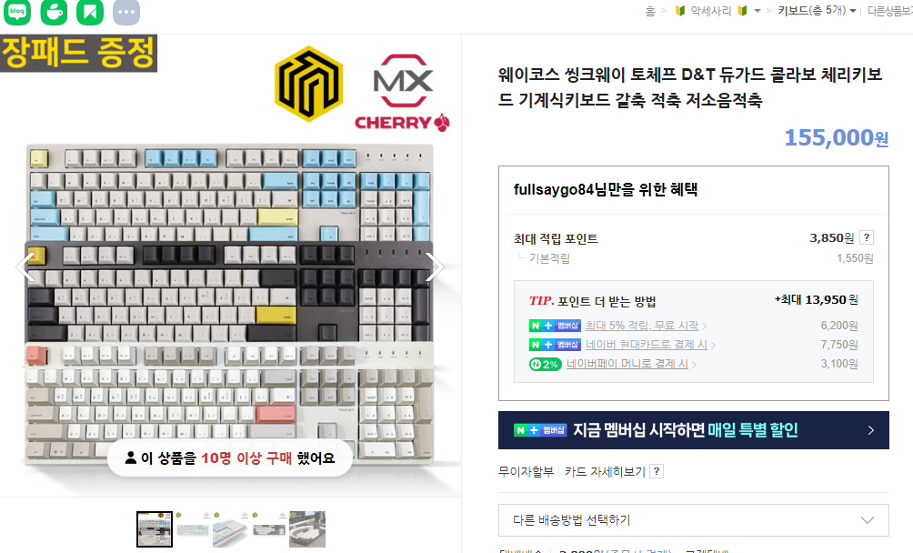 (무선으로 산다는 게 싸다고 눌렀더니 유선으로 구입해 버렸어요;;;) 그래서 저는 '듀가드와 싱크웨이'가 콜라보로 만든 토체프 키보드를 구입을 했답니다.