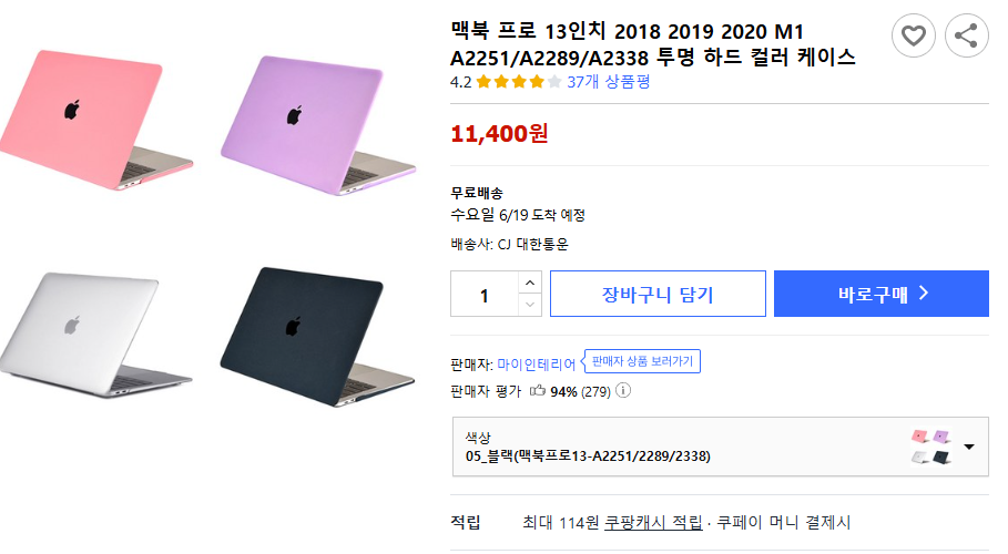 그래서 큰맘 먹고 오랜만에 케이스를 구입하기 위해 쿠팡에서 가성비가 좋은 '무광 블랙 케이스'를 구입했습니다.