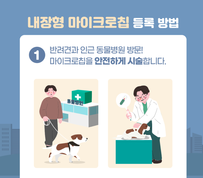 ① 인근 동물병원 방문, 마이크로칩을 안전하게 시술
