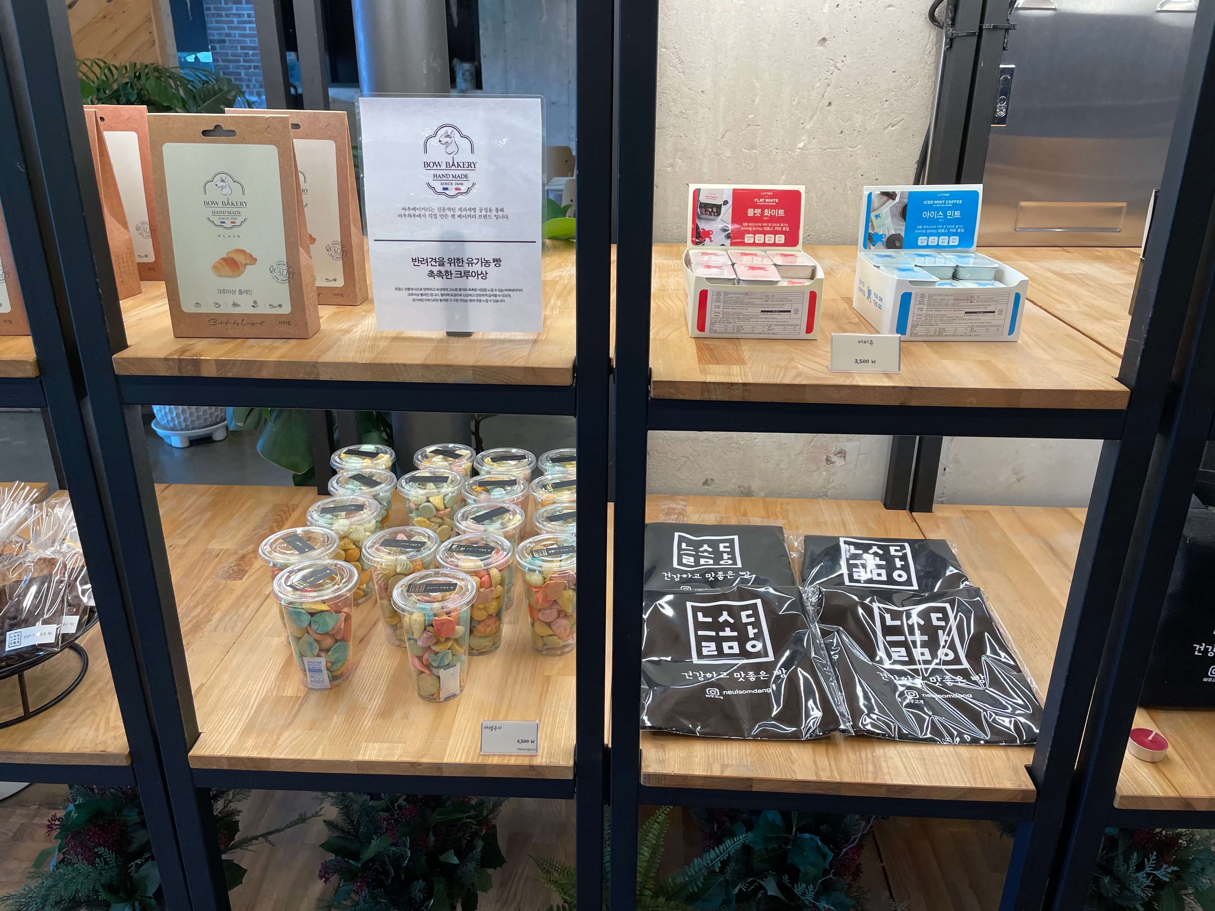 늘솜당에는 다양한 음료와 쿠키 빵을 판매하고 있고 심지어 심플한 에코백까지 판매하고 있었습니다.