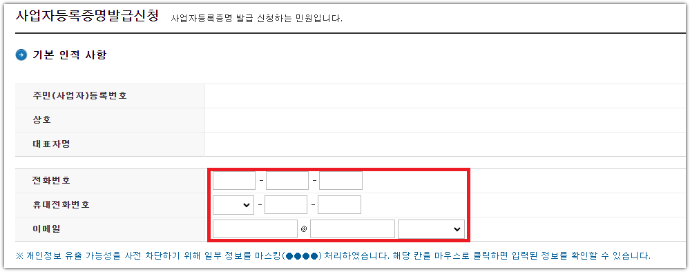 전화번호, 이메일 등 기본 인적 사항을 입력합니다.