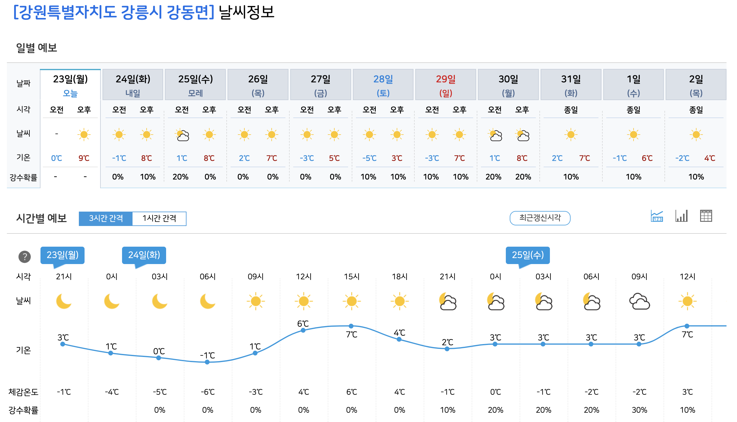 이렇게 아래로 스크롤을 내려보면 해당 지역에 대한 날씨를 확인할 수 있습니다.