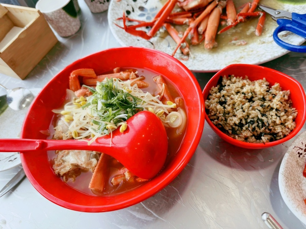 식사를 하고나서 후식(?)으로 먹는 것이 있는데 '홍게라면'과 '볶음밥'입니다. 꼭 알고 가셔야 하는 것은 '홍게라면' 은 양이 많습니다. 그리고 살짝 매운 맛이 있습니다. 반면에 '볶음밥'은 맵지는 않지만 양이 적습니다. 양을 알고 있어야 주문을 잘 할 수 있기 때문에 꼭 참고 하세요. 그리고 볶음밥은 미리 홍게의 내장을 모아 두세요. 그리고 볶음밥을 주문하실 때 함께 드리면 맛있게 드실 수 있습니다.