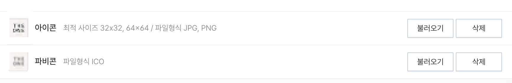 위에 있는 것이 파비콘이고 아래 보이는 것이 아이콘 입니다.
