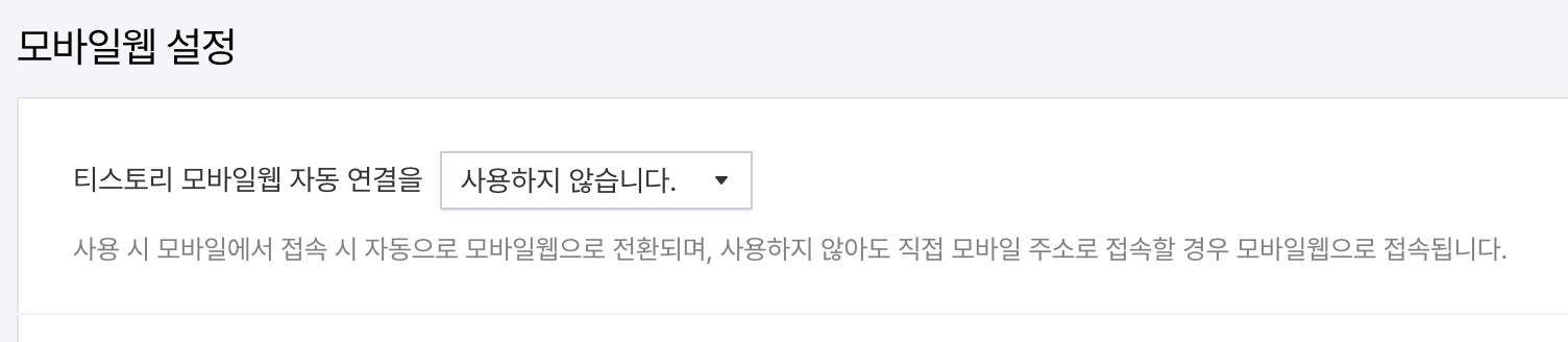 모바일웹 설정으로 들어갔다면 티스토리 모바일웹 자동 연결을 '사용하지 않습니다' 라고 반드시 바꿔 주어야 합니다.