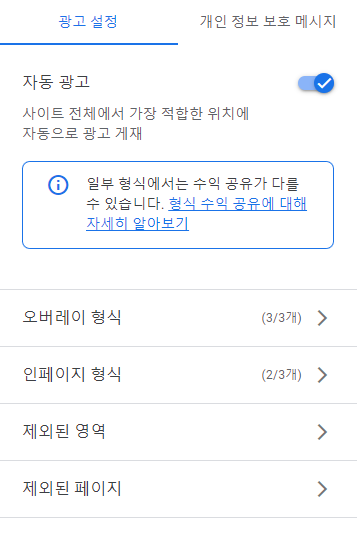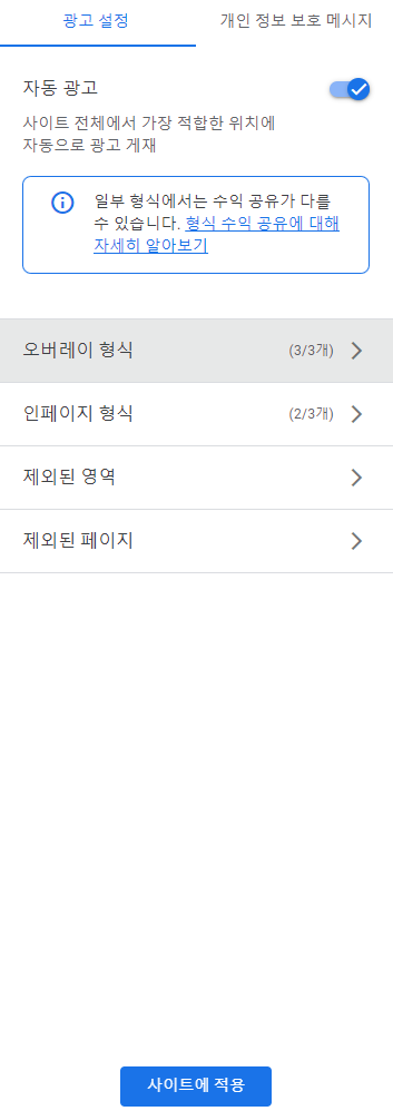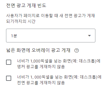 애드센스 전면광고 설정방법 (빈도설정)