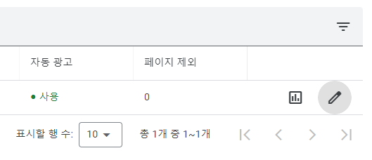 애드센스와 연결된 도메인 가장 오른쪽을 보면 연필모양으로 된 '수정' 아이콘을 선택합니다.