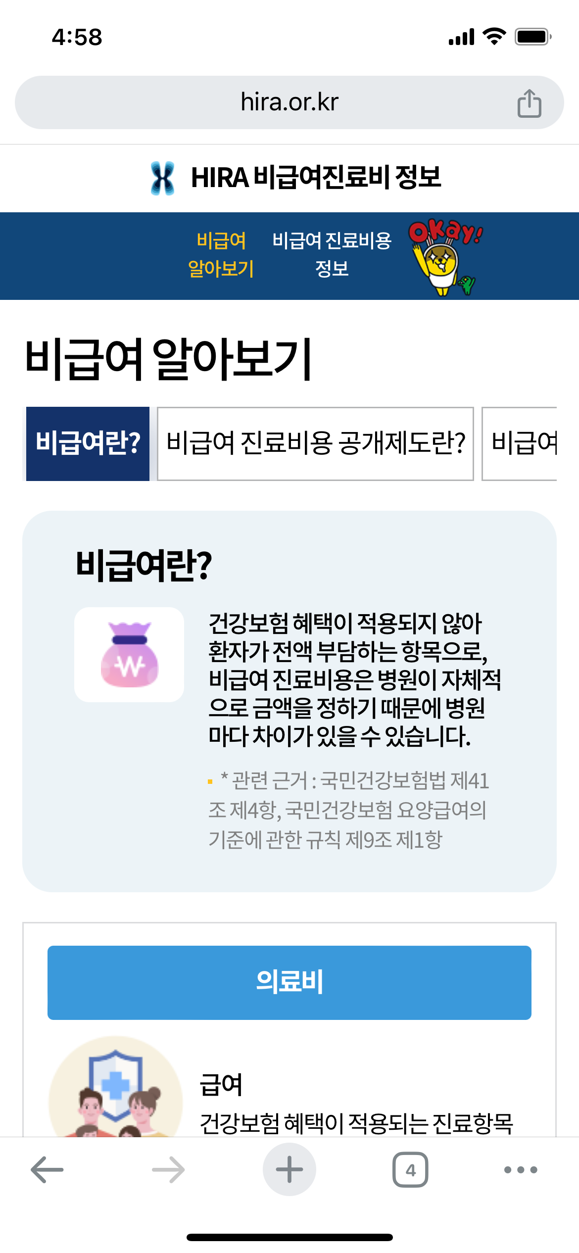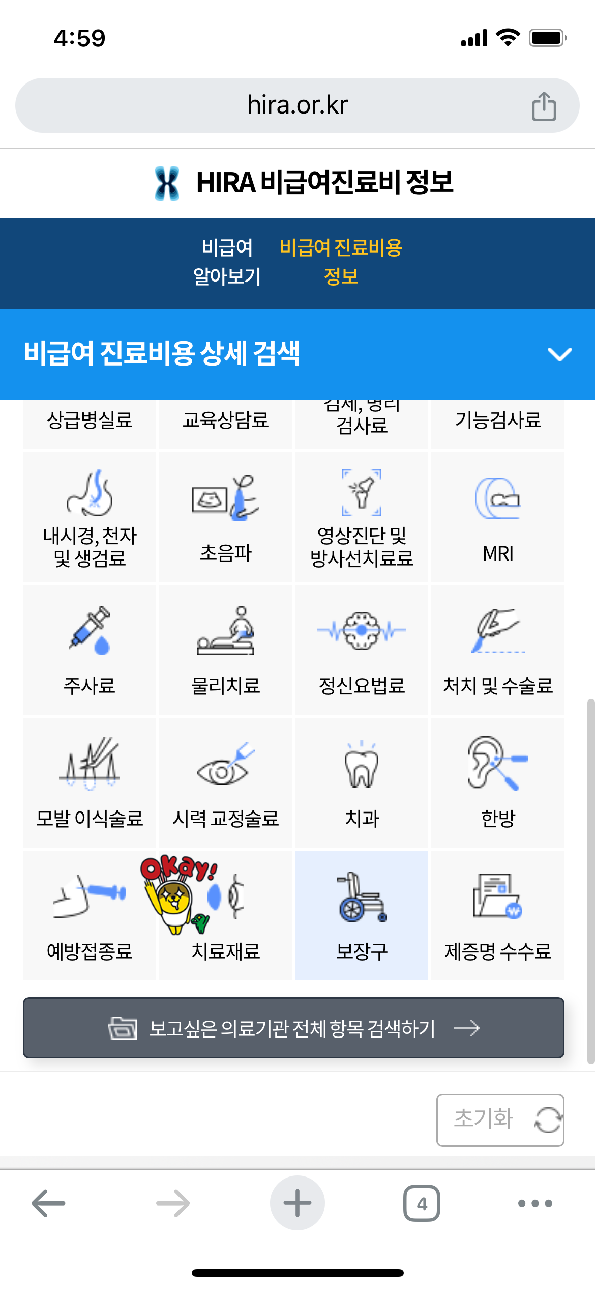 2. 비급여 진료비 정보 선택