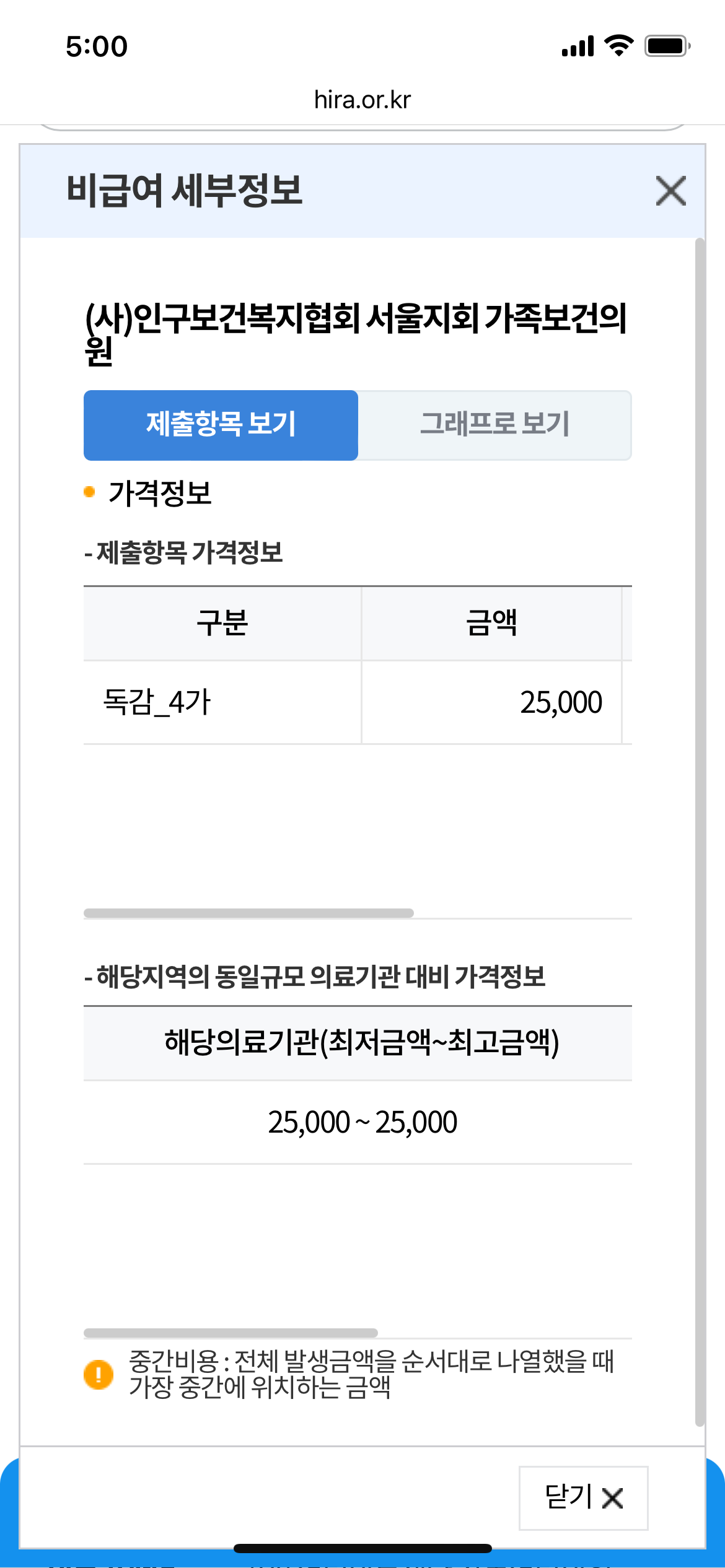 7. 각 의료기간에서 '세부' 선택