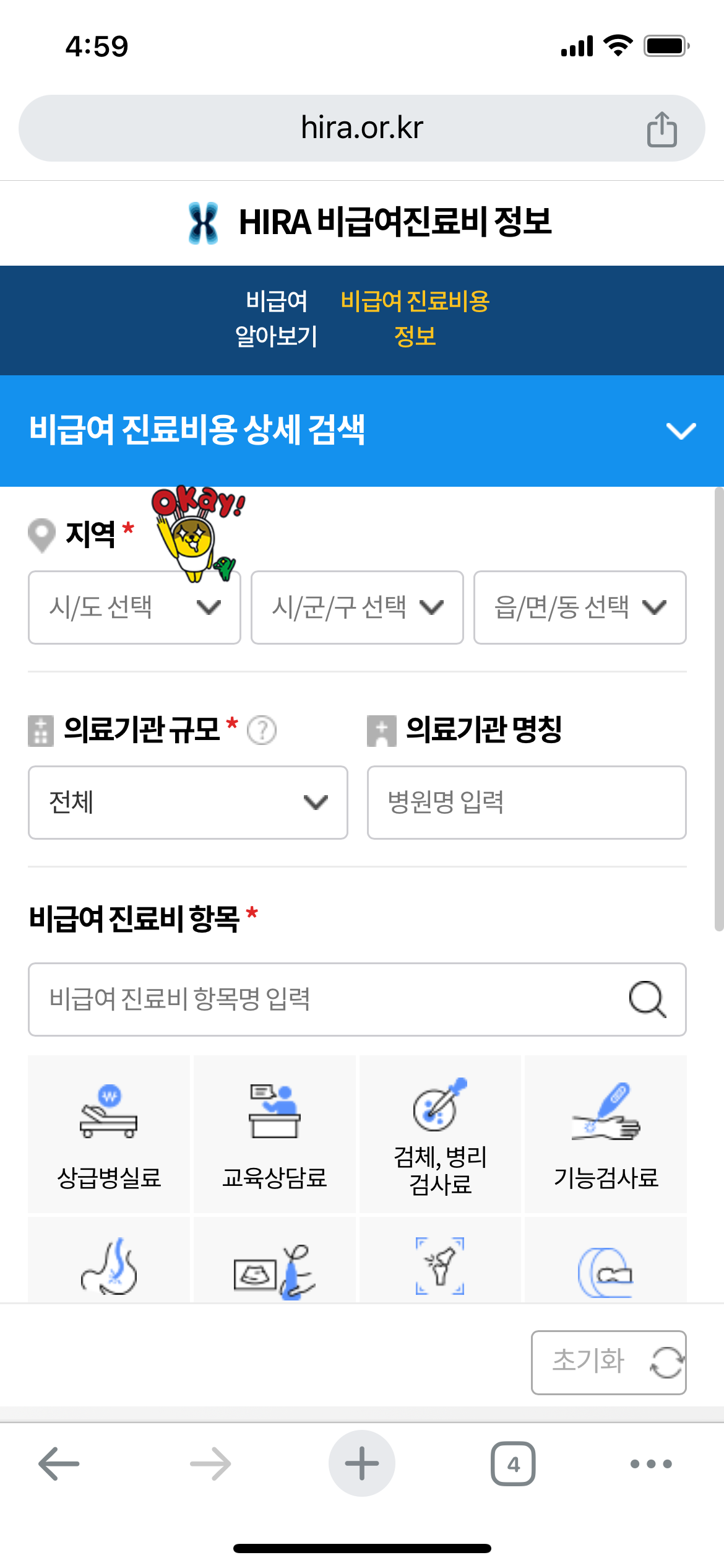 2. 비급여 진료비 정보 선택