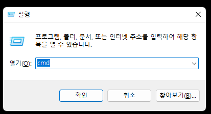 1. Ctrl + R 실행버튼을 눌러서 cmd를 입력