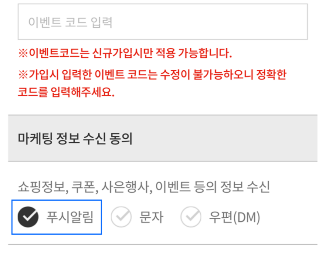 반드시 회원가입을 완료하기 전, '푸시 알림' 설정을 해야 합니다.