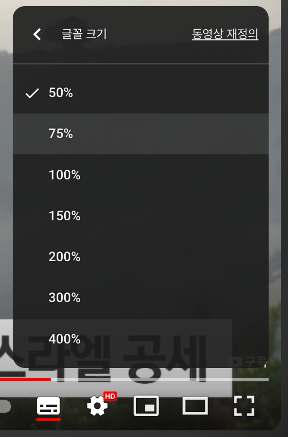 ※ 동영상 재정의: 동영상에서 지정한 자막스타일을 사용할지 여부를 설정하는 곳입니다.