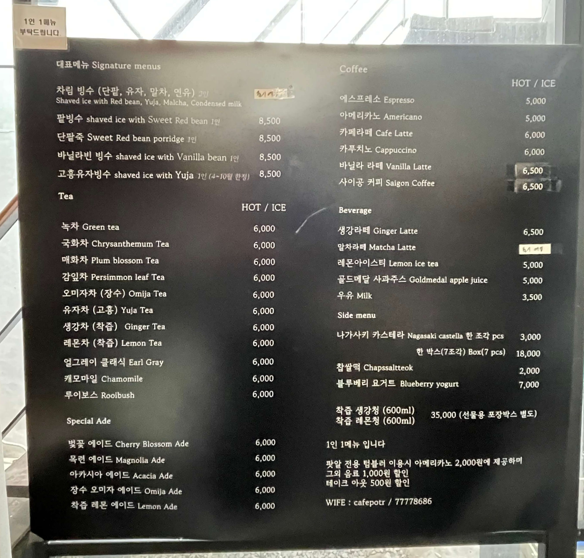 빙수 맛집답게 빙수메뉴가 제일 위에 있네요.