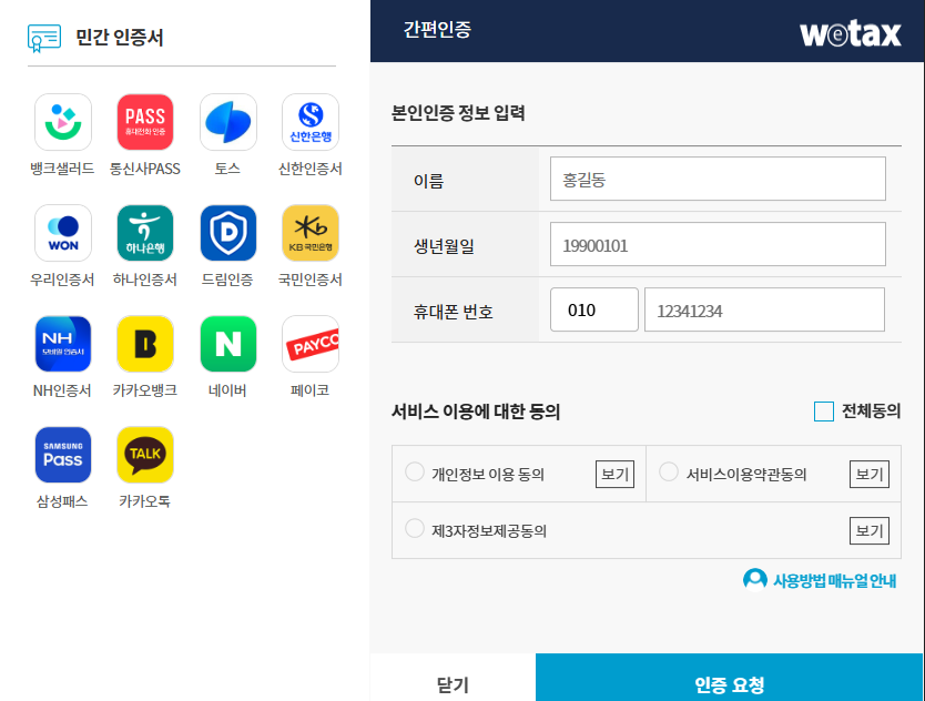 1. WETAX 로그인하기