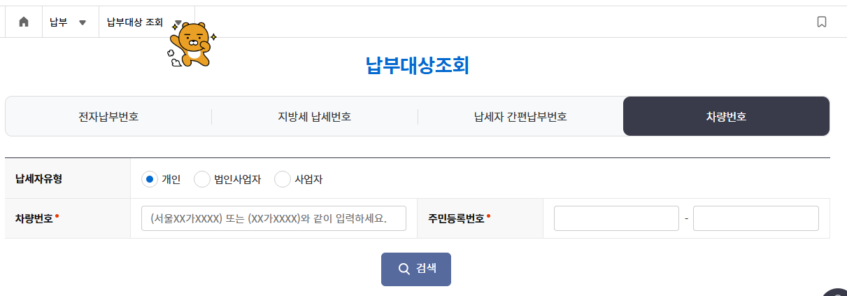 3. 차량번호로 납부대상 조회하기