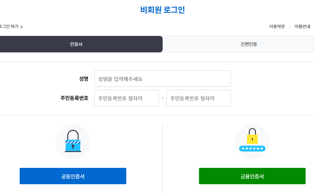 1) 공동인증서나 금융인증서로 로그인 하는 방법