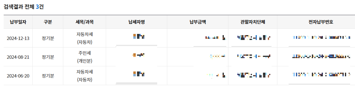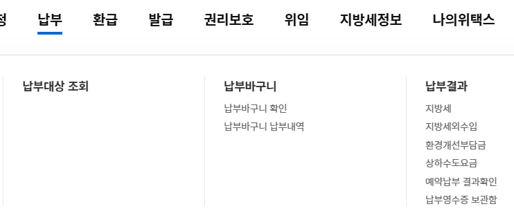 1) 납부 >> 납부결과 >> 지방세 클릭