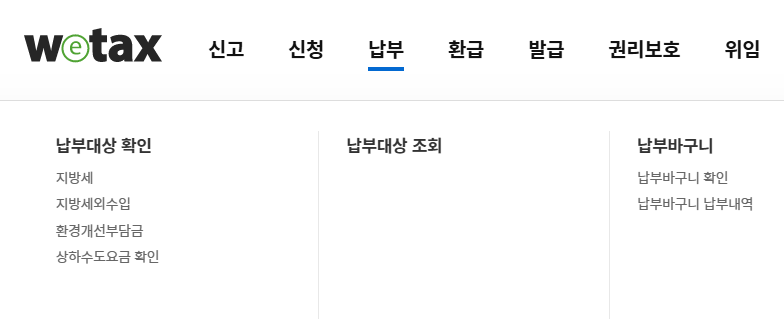 납부 >> 납부대상 확인 >> 지방세 클릭