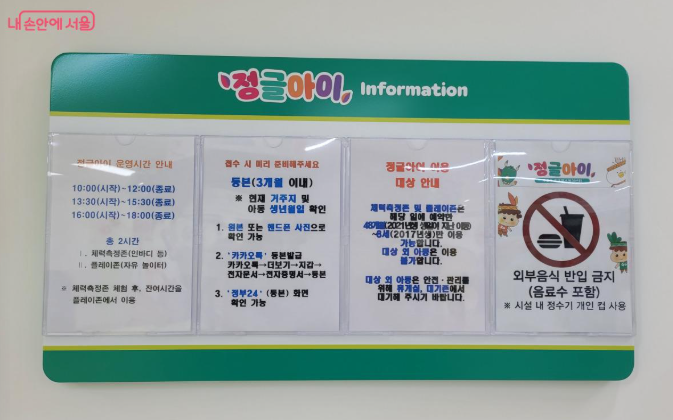 정글아이는 48개월~8세까지 이용이 가능하며 사전 예약으로 이용할 수 있습니다. 정글아이에 도착하면 아이 이름으로 예약을 확인하는데, 이때 주민등록등본을 확인하니 미리 챙겨가야 합니다. 등본은 사진이나 실물, 정부24 애플리케이션 발급분 등이 가능하니 참고하시기 바랍니다.