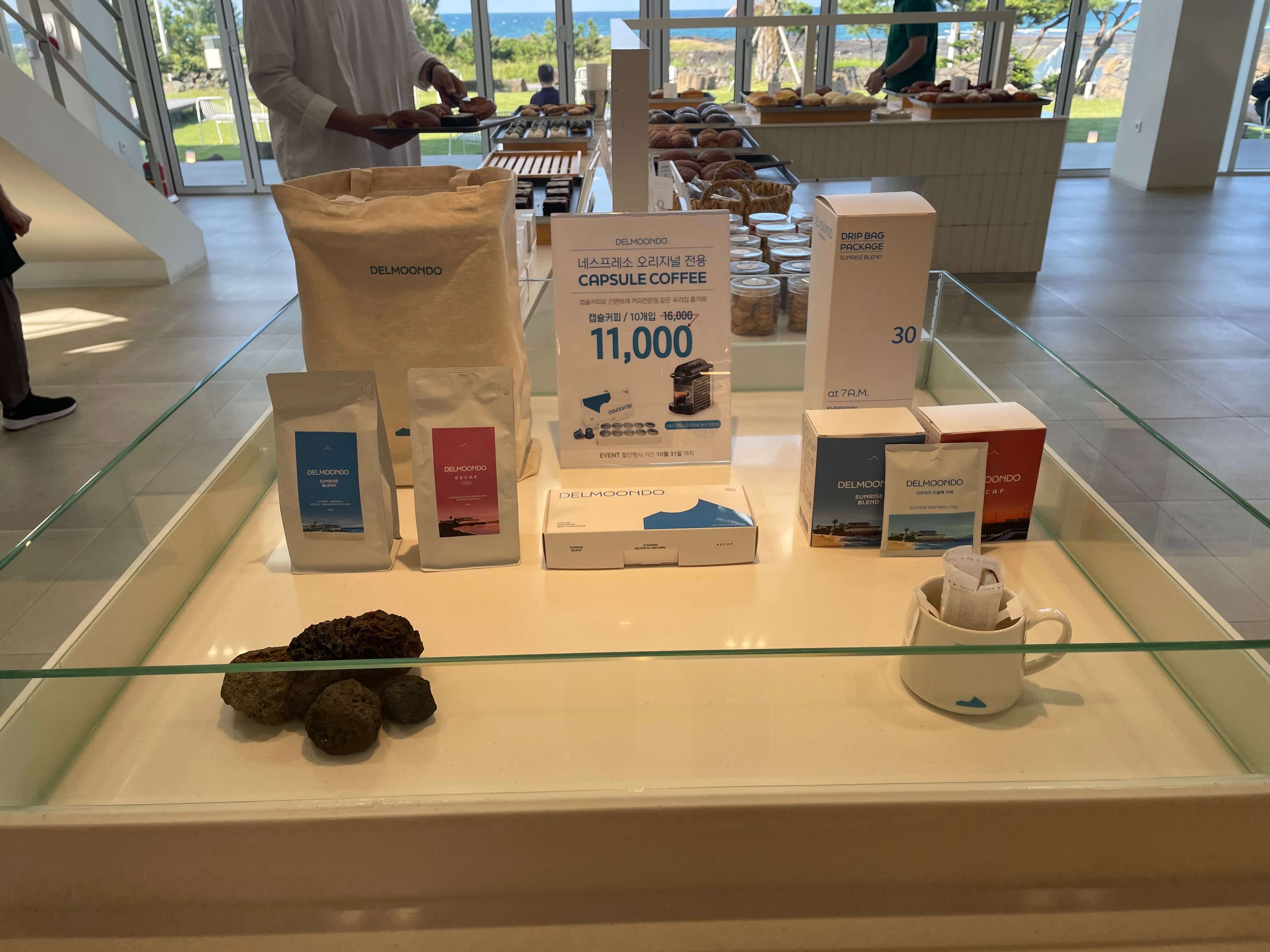 A동에는 음료와 디저트를 주문하는 곳과 델문도 시그니처 굳즈를 구입할 수 있는 곳이 있습니다.