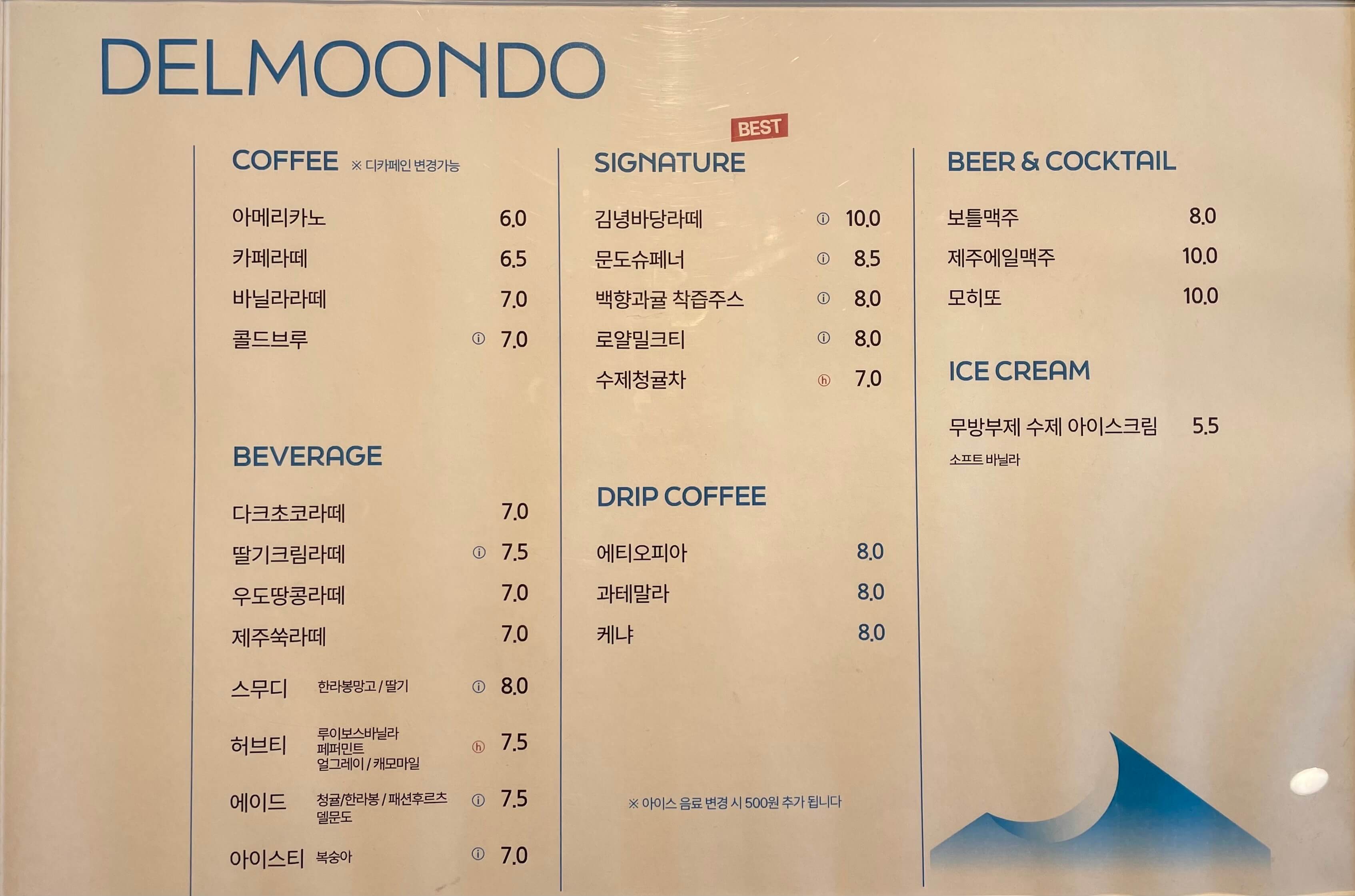 하얀 백사장과 바다를 바라보는 것만으로도 기분이 좋은데 그 모든 것들을 생생하게 보며 커피와 차 그리고 디저트를 즐길 수 있는 곳을 소개해 드리려고 합니다. 바로 '델문도' 김녕점입니다.