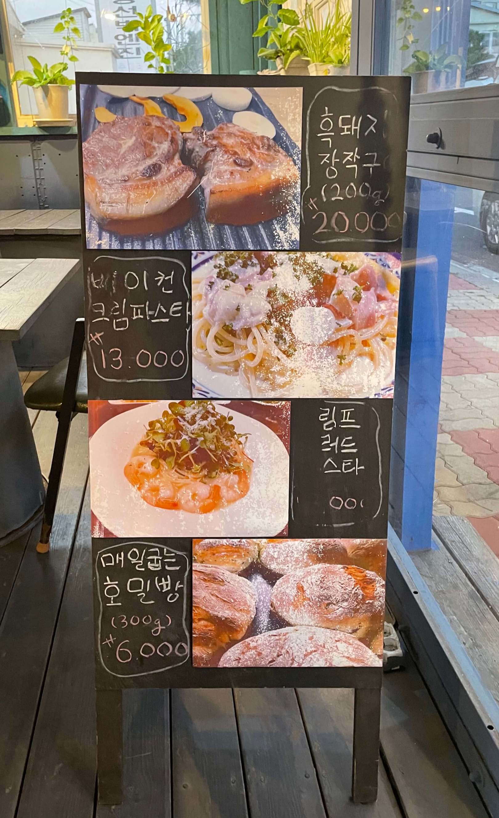 메뉴판을 보시면 흑돼지를 파는 곳에 파스타를 판매하냐고 의아해하실 수도 있지만 사실 한스 K55 흑돼지 장작구이와 몰타파스타라는 두 개의 식당을 한 곳에서 운영하고 있습니다. 당황하지 마시고 '흑돼지 장작구이'를 주문하시면 됩니다.