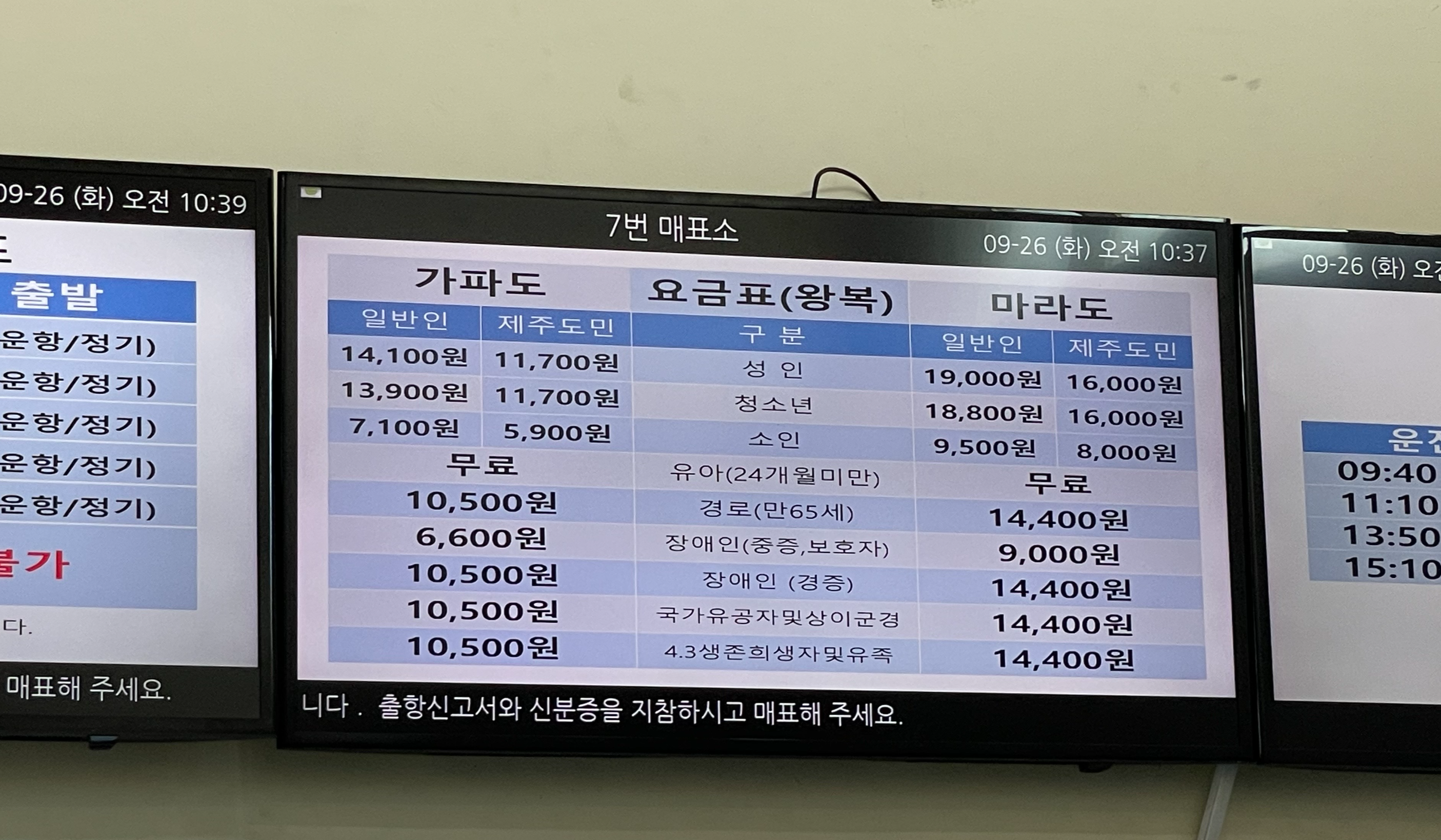 - 단, 오후 3시 배편부터 왕복이 불가하다는 점 반드시 체크하시기 바랍니다.