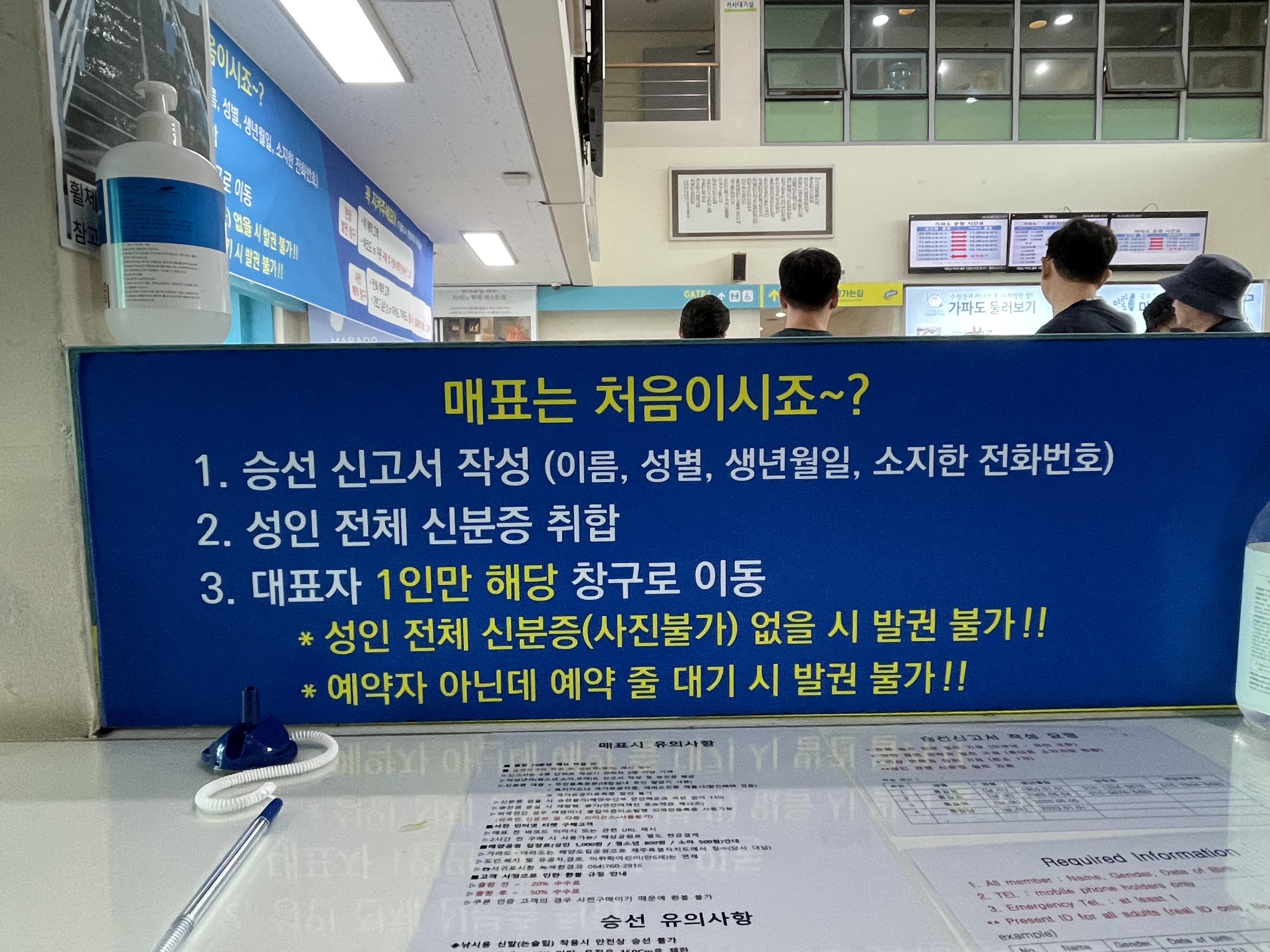 - 티켓 구매 전 Gate에 있는 출항신고서와 신분증을 반드시 지참하시기 바랍니다.