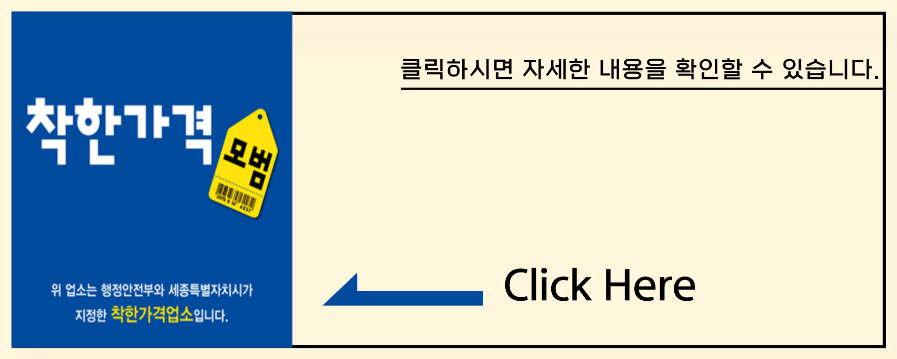 착한 가격 업소의 매출증대를 통해 서민경제 살리기에 동참하여 서로 Win-Win 할 수 있도록 많이 애용해 주시길 바랍니다.