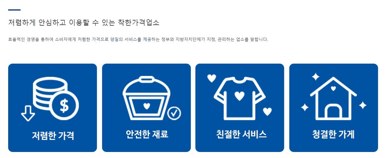 그래서 행정안전부에서 '착한가격업소'라는 제도를 만들어 이곳은 가격이 착한 곳이라는 것을 인정하며 여러 혜택을 제공하고 있습니다.