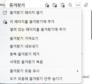 - 즐겨찾기 우측 상단 '옵션'(점 세 개) 클릭)