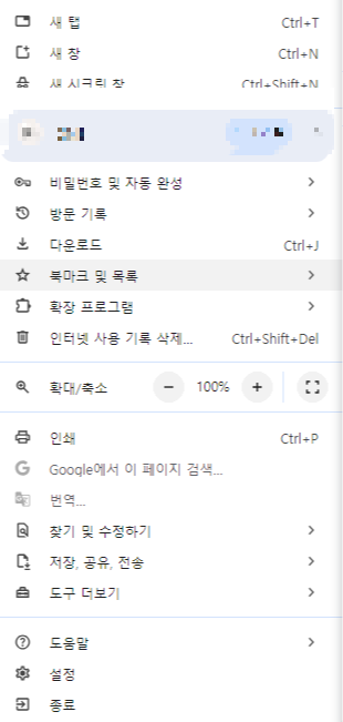 - 크롬 웹 브라우저 우측 상단 '옵션'(점 세 개) 클릭