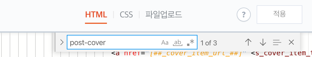 html 안에서 클릭을 하고 ctrl+F 후 'post-cover'를 찾습니다. 그 중에 3번째로 가서 <div class="post-cover" <s_article_rep_thumbnail>을 찾습니다. 그리고 그 아래 https://blog.kakaocdn.net/dna/lkr6d/btsLNwYPyv9/AAAAAAAAAAAAAAAAAAAAAMbVlVSvoK_q7OTUUhLZe6Uk5b6Rd63bGZNzJehZ6Qxp/img.png?credential=yqXZFxpELC7KVnFOS48ylbz2pIh7yKj8&expires=1777561199&allow_ip=&allow_referer=&signature=eoRNniP7xdEUOlqacJrgPDlZAdM%3D 이라는 부분을 none으로 바꿔 줍니다. 여기서 Post-cover는 제목 배경을 말하는 것입니다. 기억하고 있으세요.