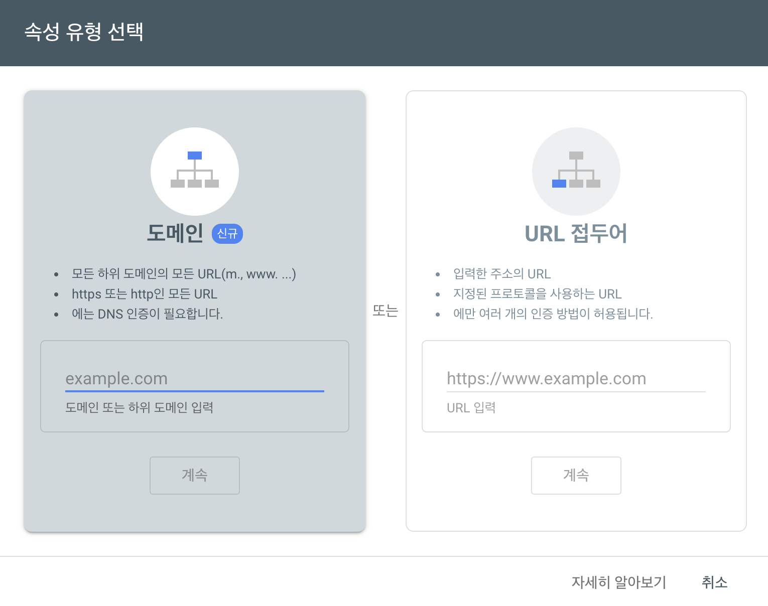 1) 첫 번째는 왼쪽에 보이는 것처럼 도메인(하위 도메인 포함) 주소를 입력하는 방법입니다.