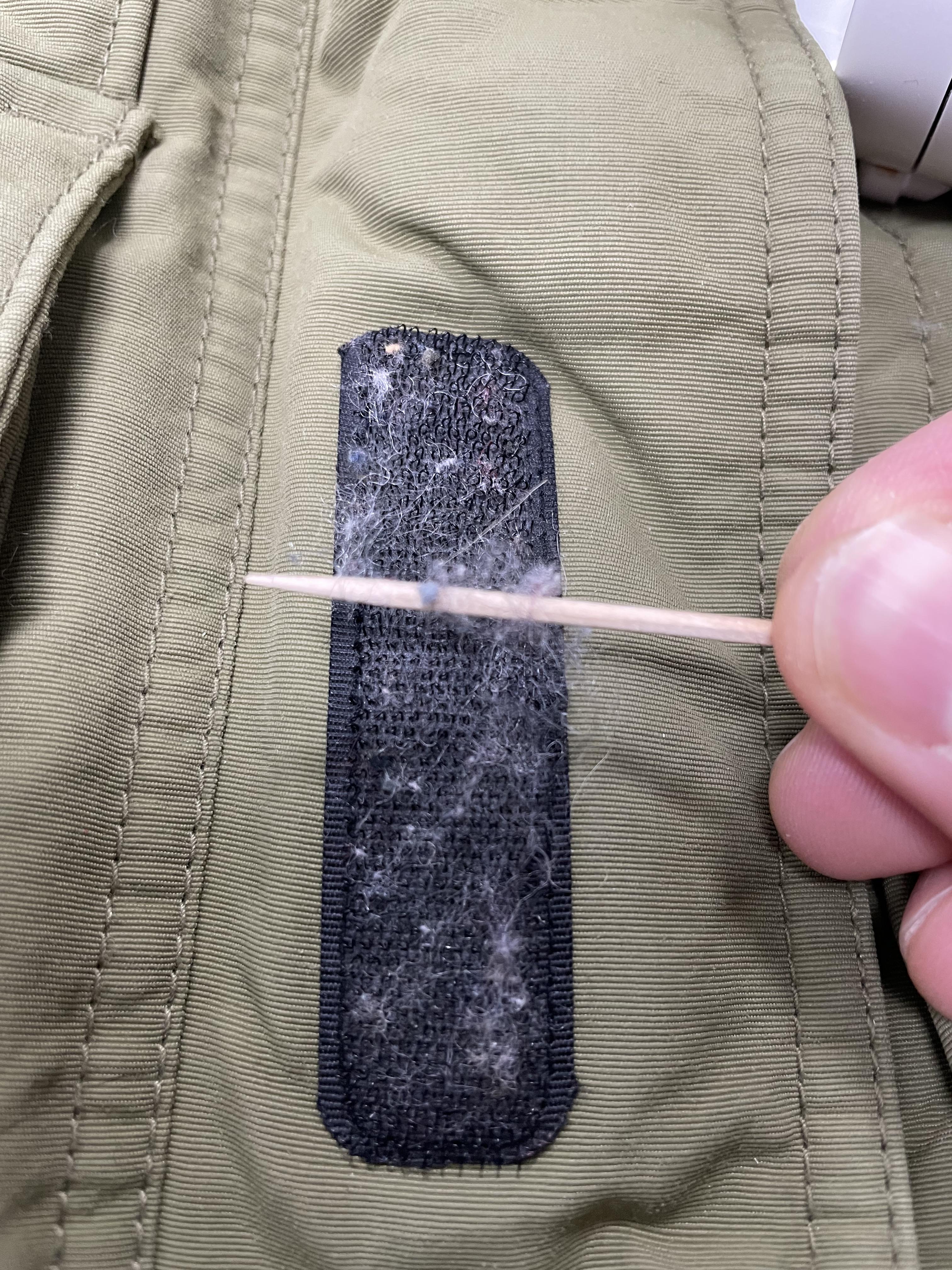 찍찍이 깊숙하게 박힌 먼지를 이쑤시개나 끝이 뾰족한 물건으로 위로 빼내줍니다.