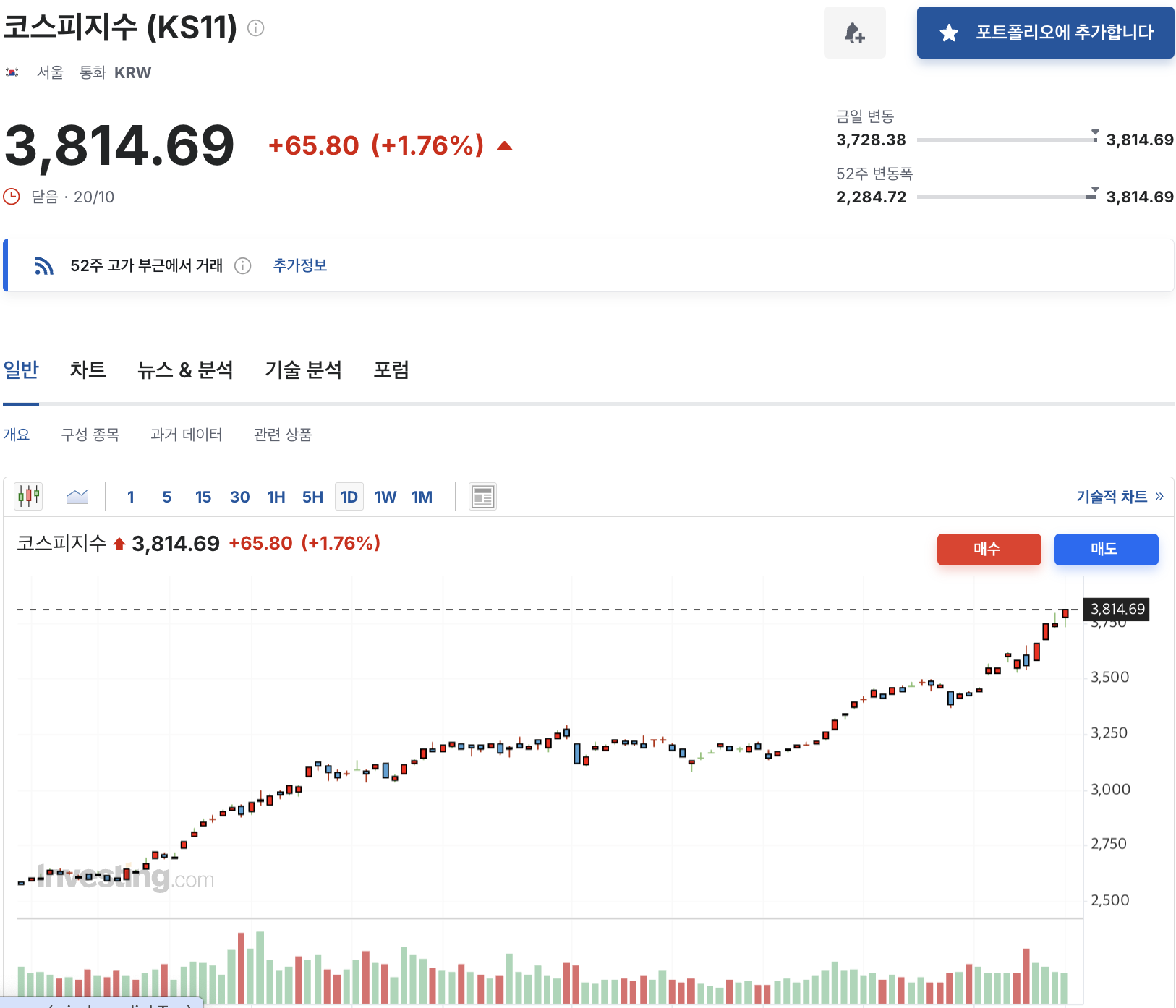 KOSPI는 3,748.37p 사상 최고치를 경신하며 2거래일 연속 상승했습니다. (출처: 매일경제)