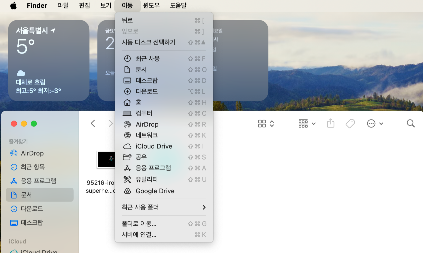 2. 왼쪽 상단 탭에서 '이동' >> '폴더로 이동'